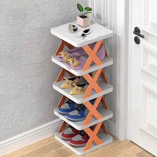 Space-Saving Design: This 5 tier folding shoe rack offers a stackable solution to neatly store...